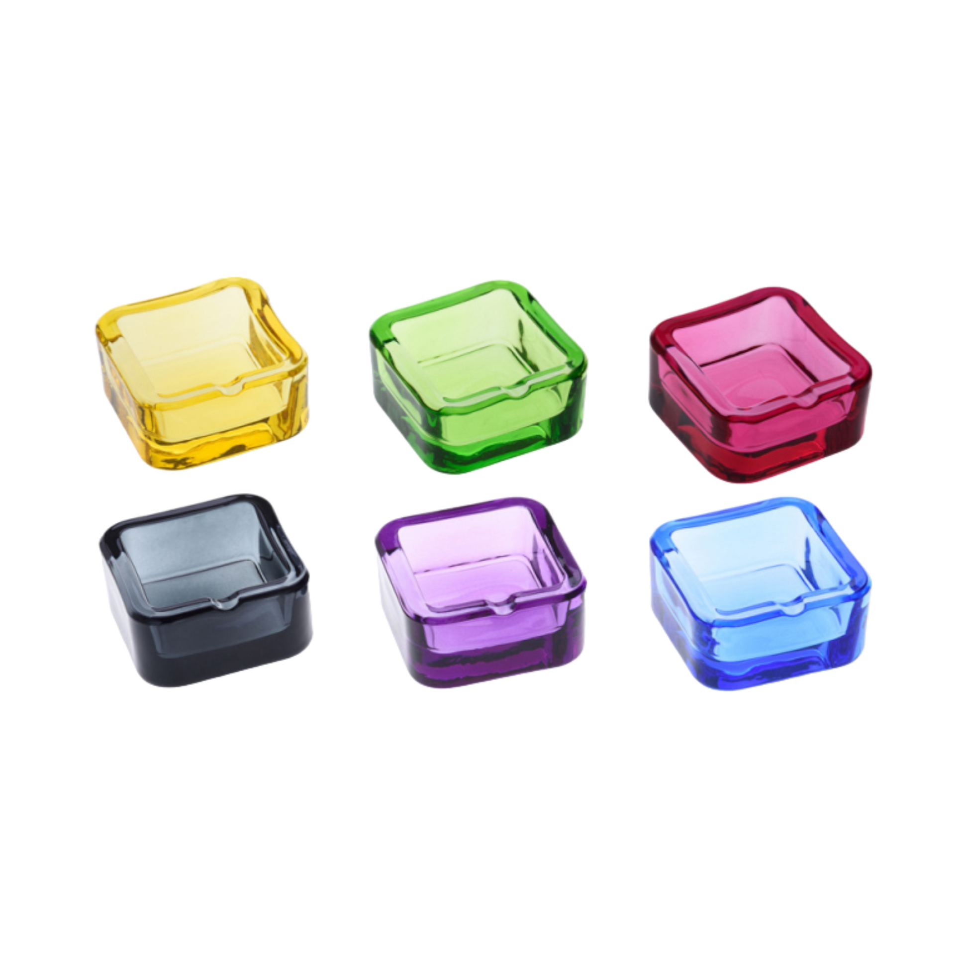 Handliche Glasaschenbecher in 6 verschiedenen Farben.