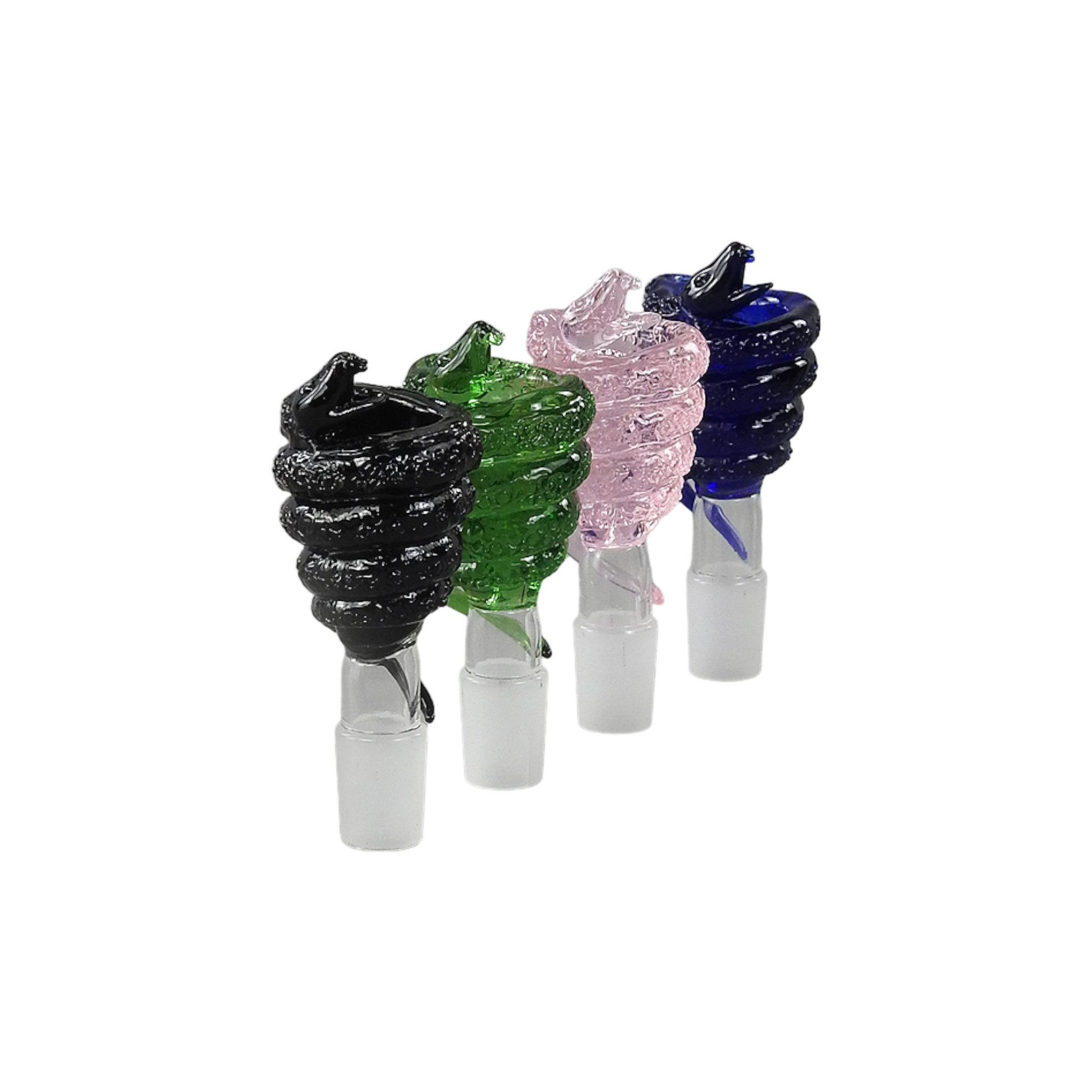 Dieser einzigartige Bongkopf mit einem schlanken Schlangendesign ist ein echter Hingucker. Der 18,8er Schliff passt zu den meisten Bongs und das mittelgroße Durchlassloch sorgt für ein angenehmes Raucherlebnis. Mit einer Gesamthöhe von ca. 10cm ist dieser Kopf nicht nur funktional, sondern auch ein schönes Stück Glas-Kunst.